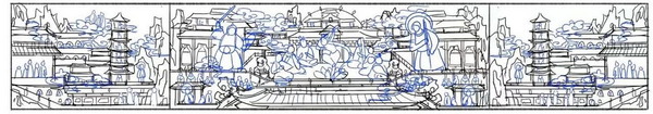 此項目從展會前一年就開始準(zhǔn)備。靈感來源于中國的傳統(tǒng)繪畫、雕塑及建筑。一位本土藝術(shù)家基于各種參考元素,創(chuàng)作了 3D 立面的原始草圖,并將其轉(zhuǎn)化為三維概念模型。