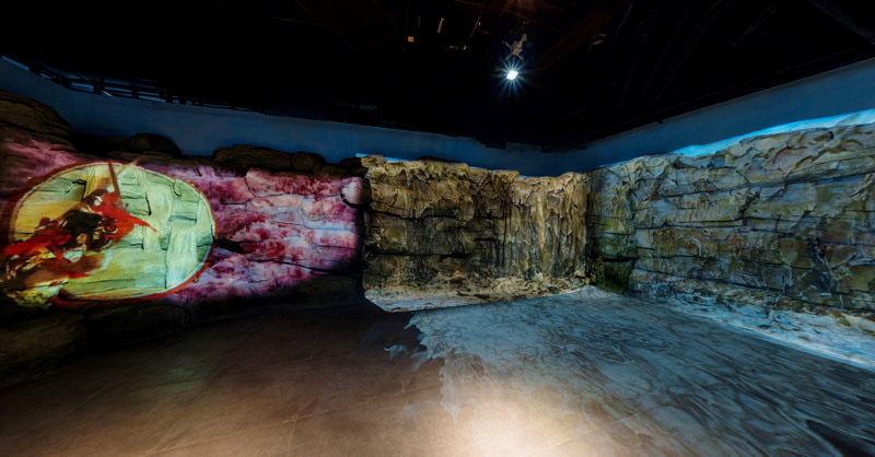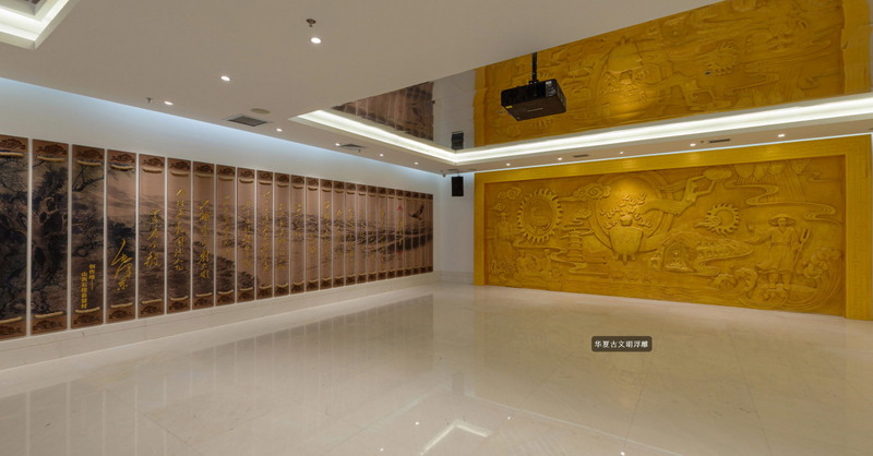 華夏古文明浮雕投影,主畫面以浮雕結(jié)合投影出現(xiàn)。參觀者通過光影變幻感受華夏古文明。