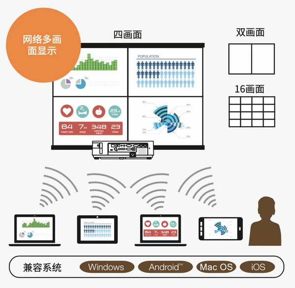 MultiPresenter智能無線分享:整合無線投影、多畫面顯示、文件共享、智能連接、演示切換等智能化操作,讓內容共享更加自由,方便教師和學生進行互動和展示。