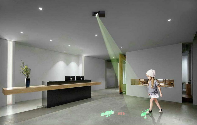 在餐廳里放一臺IntelliView投影設(shè)備,那么當(dāng)客人進(jìn)來時,就可以向其所在桌子上投影一些促銷和菜品信息,或有趣的圖畫吸引用戶,一臺設(shè)備就可以覆蓋多個餐桌。