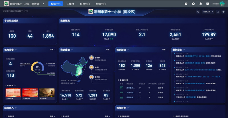 此外,學(xué)校還將線上化研修訓(xùn)練營等教研活動(dòng)專欄,供校內(nèi)研討資料留檔備份。截止日前,學(xué)校已累計(jì)教師課件1.7萬余份,共享共建優(yōu)質(zhì)校本資源近1500份。所有數(shù)據(jù)變化均由希沃魔方·數(shù)字基座數(shù)據(jù)中心看板清晰呈現(xiàn)。
