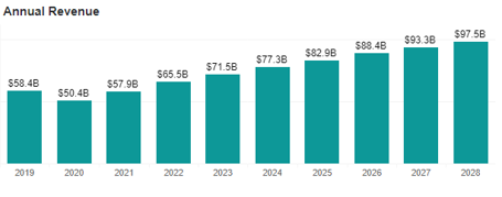 據(jù)AVIXA每年發(fā)布的IOTA報告提供有關(guān)專業(yè)視聽行業(yè)規(guī)模的全球視角數(shù)據(jù)和分析報告指出專業(yè)視聽行業(yè)有望在 2028 年之前實現(xiàn)健康增長,呈現(xiàn)各種各樣的機(jī)遇。