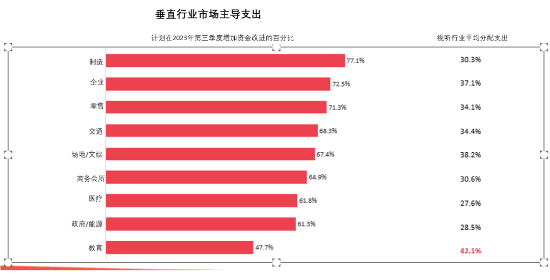 主導(dǎo)專業(yè)視聽市場的垂直行業(yè)支出百分比