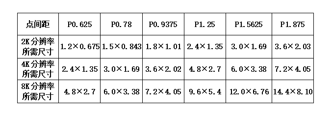 如上表所示,以4K為例,我們要在一個(gè)正常層高的寫字樓內(nèi)安裝的話,至少需要使用P0.9的產(chǎn)品,一般的會(huì)議室要用P1.2的產(chǎn)品去做,這也就是目前P1.2是主流的原因,如果是8K呢,我們只能使用更小的P0.7、P0.6去完成。這也就帶來了另一個(gè)問題,性價(jià)比。