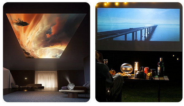 投影儀自配兩種不同的云臺(tái),無(wú)論是磁吸支架,或是圓月云臺(tái),都支持360°旋轉(zhuǎn)投影,可以側(cè)投、仰投天花板。