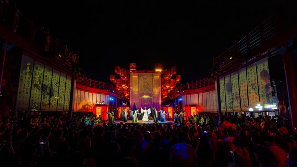 “何須更有桃源境,只此瑯琊最傾心”。位于臨沂的瑯琊古城,于2024年初盛大開(kāi)園,以驚艷之姿成為臨沂文旅的新地標(biāo)。瑯琊古城中的“頂流”演藝項(xiàng)目之一——《只此瑯琊》是全國(guó)首創(chuàng)的立體沉浸式演藝,觀眾在如夢(mèng)如幻、若即若離的行進(jìn)中,與上百位演員共同品讀瑯琊風(fēng)華。這部沉浸大劇的第三幕,使用全息紗幕投影的方式,帶觀眾回溯東晉,見(jiàn)證王羲之大婚、與顏真卿的水墨對(duì)決,為游客呈現(xiàn)一場(chǎng)風(fēng)雅的視覺(jué)盛宴。