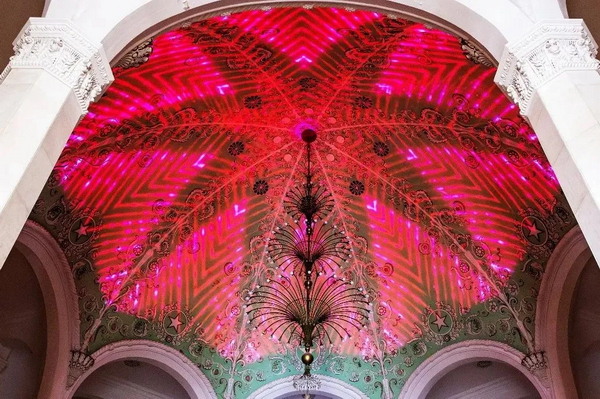 再往里走,進(jìn)入中央大廳,就仿佛進(jìn)入了神秘的異域空間?偣48臺(tái)松下工程投影機(jī)將光影精準(zhǔn)貼合中央大廳頂部造型,覆蓋墻面及所有區(qū)域,2000多平方米的影像充分激活了臨場(chǎng)沉浸感。光影節(jié)期間,游覽參觀的人是絡(luò)繹不絕,成為了上海最火的打卡拍照地之一。