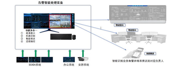 該系統(tǒng)引入AI技術(shù),通過告警信息的主動歸集、分類、報警和推送,以聲光電多種手段報警、多重融合顯示、立體聯(lián)動等功能,實現(xiàn)了“信息主動找人”,這不僅大幅減少了人工漏判的風險,還實現(xiàn)了報警的及時處理和事件的全流程監(jiān)管。
