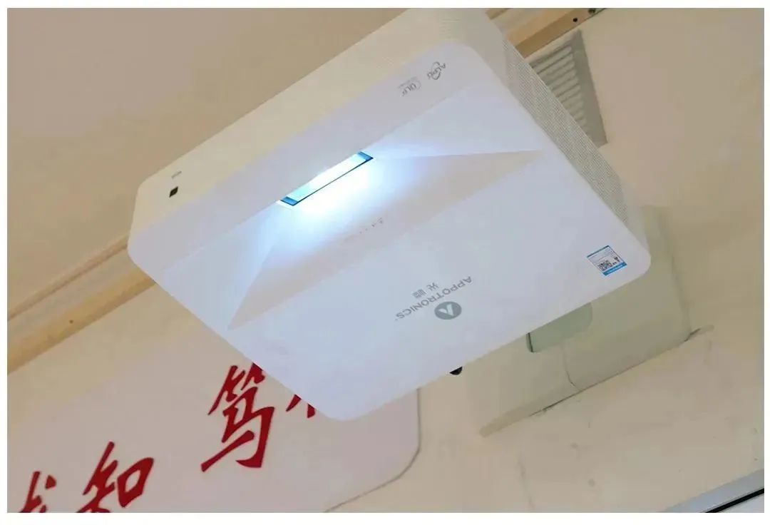 這里安裝使用的是光峰激光高清超短焦教育投影機(jī),0.25投射比,1080P分辨率,能夠在有限的距離投射出最高150吋的高清畫面,對(duì)于空間緊湊的教室而言,有效節(jié)省了安裝空間。
