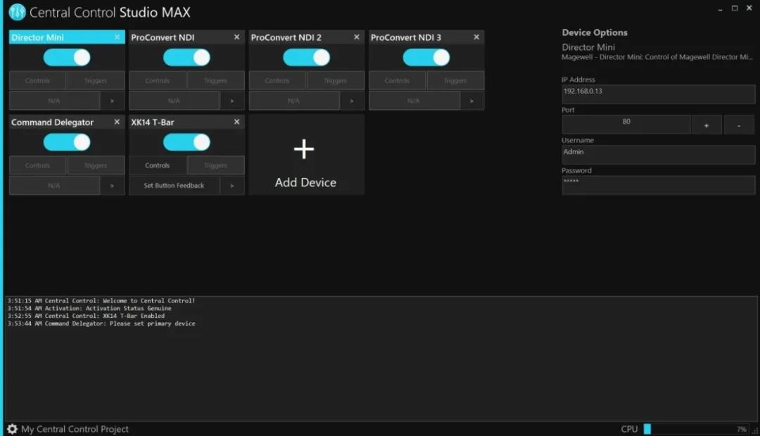 Central Control 4中針對(duì)Director Mini的新模塊提供了對(duì)場(chǎng)景切換、圖形觸發(fā)和音頻的控制(包括使用Behringer X-Touch控制器時(shí)的電平表和標(biāo)簽條)。同時(shí),用于Pro Convert解碼器的新模塊允許輕松選擇源視頻流。