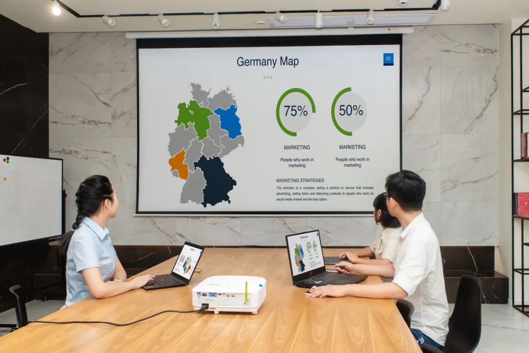 為了保證畫質(zhì)的穩(wěn)定輸出,明基E系列開創(chuàng)性地將畫面亮度升級至4000流明左右,比起3000流明的投影儀亮度還要高出33%,開燈也幾乎不受干擾,而且全系均采用0.65或0.55英寸的大底芯片,拒絕“抖”清晰,確?梢詽M足8人以上的會議需求,無論座位遠(yuǎn)近,每一個文字都清晰可見。同時,明基E系列還搭載DLP顯示技術(shù),天生具備高對比度,相比3LCD投影色彩衰減更慢、維護成本更低,長久使用畫面依舊細(xì)膩穩(wěn)定,更適配于商用場景。