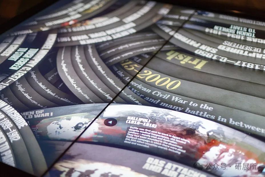 展項(xiàng)通過絲帶的界面呈現(xiàn)一系列詩歌摘錄,展示歷史上愛爾蘭移民選擇前往戰(zhàn)區(qū)的故事和背景。