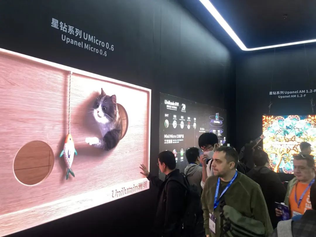 本次展出的UMicro0.6-0.7產(chǎn)品,采用COB封裝技術(shù)、全倒裝RGB芯片,亮度高達(dá)1200nits,可廣泛應(yīng)用于多個領(lǐng)域。