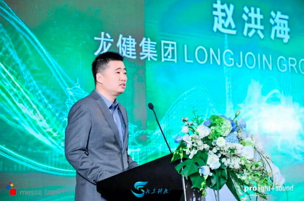 隨后,參展商代表龍健集團(tuán)副總裁趙洪海先生上臺(tái)發(fā)言。他分享了龍健集團(tuán)對(duì)本屆展會(huì)的期待和準(zhǔn)備情況,并表示將在5月廣州展上展示最新的產(chǎn)品和技術(shù),為觀眾帶來更加震撼的視聽體驗(yàn)。