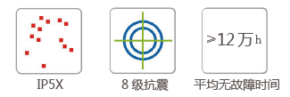 專業(yè)的防塵/ 抗震設(shè)計,具備IP5X 防護等級,通過8 級抗震檢測,平均無故障工作時間(MTBF)不小于12 萬小時。