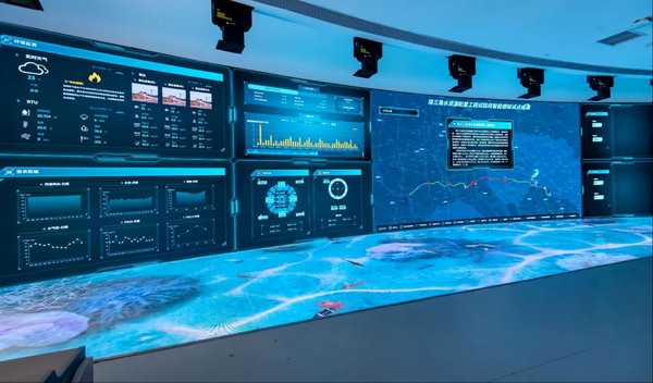 調(diào)度監(jiān)控中心作為工程的實(shí)時(shí)監(jiān)控中心,是整合各類資源和有效調(diào)度的關(guān)鍵。在這塊智慧大屏上,41個(gè)水情水質(zhì)站、2300余個(gè)視頻監(jiān)測(cè)、2.86萬(wàn)余個(gè)工程安全監(jiān)測(cè)點(diǎn)位的監(jiān)測(cè)信息頻繁閃爍,數(shù)據(jù)實(shí)時(shí)更新、即時(shí)預(yù)警,為工程的調(diào)度和管理提供了強(qiáng)大的技術(shù)支撐。
