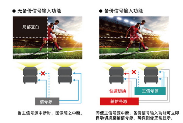 冗余的激光光學(xué)引擎(冗余電路)和信號備份功能帶來強(qiáng)大的容錯(cuò)性,可在激光模塊損壞或信號丟失情況下,保持畫面輸出,保障展演無“意外”,不負(fù)觀眾期待。