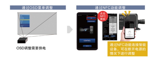 使用手機(jī),最多可以對64臺投影機(jī)進(jìn)行開機(jī)、關(guān)機(jī)、輸入選擇、設(shè)置調(diào)整、鏡頭調(diào)整等操作,在最遠(yuǎn)30米的距離進(jìn)行自動聚焦。