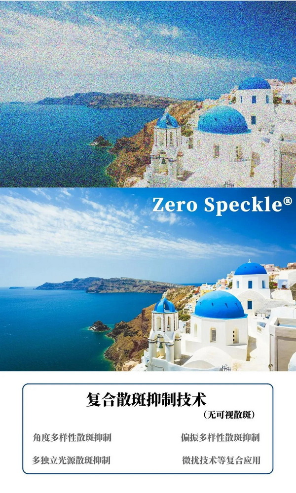 無(wú)可視散斑技術(shù)(Zero Speckle®),它讓畫面更加純凈,每一個(gè)細(xì)節(jié)都清晰可見,徹底消除了傳統(tǒng)激光放映中存在的散斑干擾,讓觀眾能夠全身心地沉浸在電影的世界里。