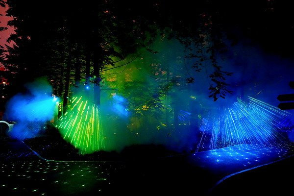 如同科幻電影中的場(chǎng)景,8米高U型機(jī)械開(kāi)合屏居中而立,四折屏立體環(huán)繞,雙面展示,側(cè)屏扇形開(kāi)啟后化三為一,開(kāi)合時(shí)間控制于150s,最終形成長(zhǎng)達(dá)40米的長(zhǎng)條巨幕。34列屏11組拼接,屏縫隙精密至2mm。這不僅是一場(chǎng)視覺(jué)的機(jī)械變形,更是技術(shù)與藝術(shù)的完美融合。
