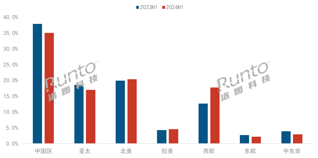 2024H1 全球投影機市場分區(qū)域出貨量結(jié)構(gòu)