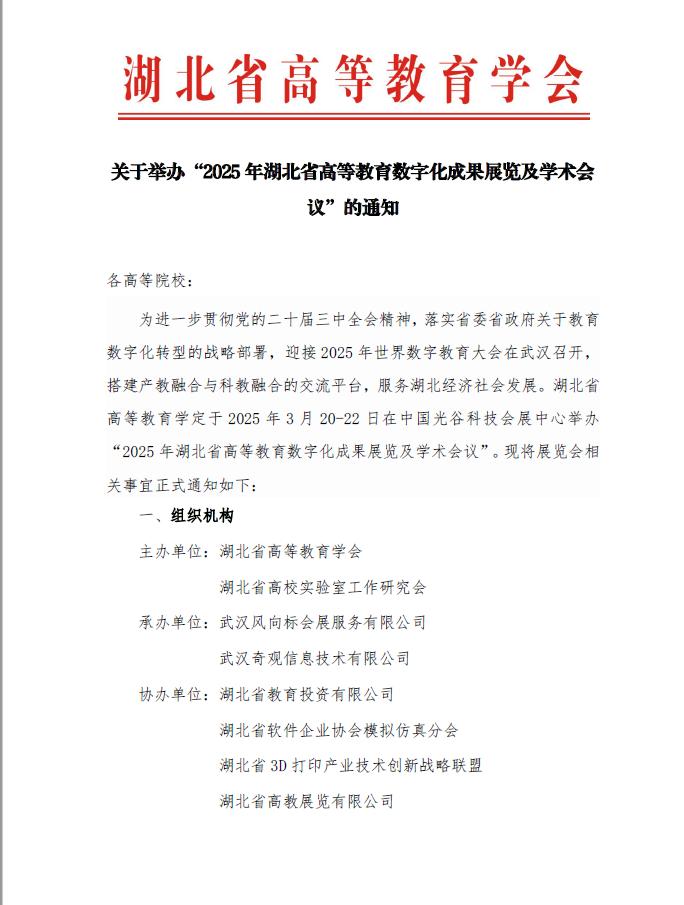 關(guān)于舉辦“2025年湖北省高等教育數(shù)字化成果展覽及學(xué)術(shù)會(huì)議”的通知