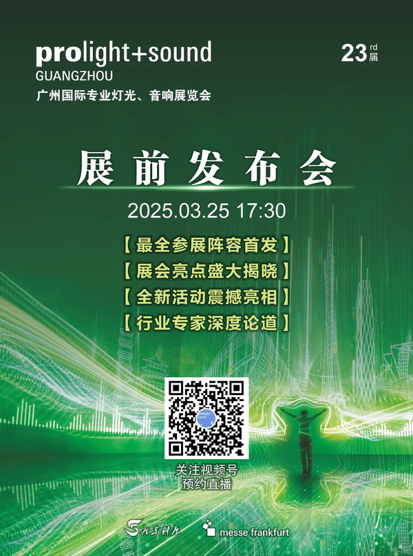 3月25日,廣州展將舉辦“視聽無界 智造未來——廣州國際專業(yè)燈光、音響展覽會展前發(fā)布會”,官宣本屆展會多項重磅亮點!