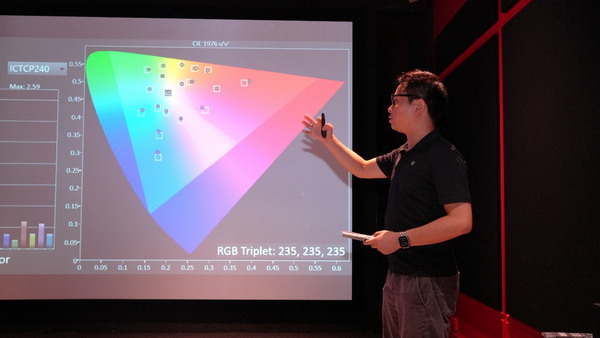 為了讓現(xiàn)場觀眾更直觀地感受索尼家用投影P7的實(shí)際表現(xiàn),《家庭影院技術(shù)》執(zhí)行主編李瑋盛通過專業(yè)儀器測試數(shù)據(jù),多角度展示了索尼家用投影P7在色域覆蓋、亮度輸出、色準(zhǔn)精度及HDR性能等方面的卓越表現(xiàn)。他還特別解析了新增的XR動態(tài)自動映射功能,詳細(xì)對比了三種不同模式的差異,并給出實(shí)際應(yīng)用建議。