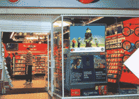 用作“飛躍式”銷售點顯示屏的dnp超對比屏幕。懸掛式屏幕無需使用投影箱,節(jié)省空間。 |
