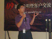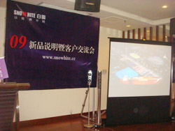 產(chǎn)品經(jīng)理姚琨主要向與會者介紹白雪公司的產(chǎn)品線及09年上市的新品情況。目前,白雪產(chǎn)品線主要包括:影院系列、鉆石系列、金剛系列、飛雪系列、工程系列以及電子白板等,他分別對豪華影院拉線幕、高清電動幕、精品畫框幕、交互式電動幕、手動幕、商務地拉幕、支架幕、快速折疊幕、雙馬達電動幕、金屬硬幕、弧型金屬幕、電動幕以及背投硬幕等作了詳細的介紹。其中,交互式電動幕是他講解的重點,白雪交互式電動幕采用進口管狀電機,寧靜流暢,備有熱保護系統(tǒng),延長了其使用壽命,此外,它選用優(yōu)質(zhì)進口幕布,高增益,為使用者提供了清晰、逼真的視覺享受,目前,其主要適合了不同領域需求,如,家庭影院、游戲互動、遠程視頻等。