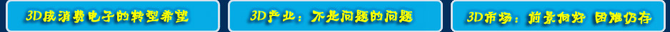 從某種意義上說(shuō),《阿凡達(dá)》的上映不僅激發(fā)了人們對(duì)3D的熱情和想象力,也成為了引爆3D立體產(chǎn)品層出不窮的“導(dǎo)火線”。3D電視、3D顯示器、3D筆記本、3DMP4、3D智能手機(jī)、3D游戲機(jī)、3D相機(jī)、3D攝像機(jī)、3D投影機(jī)……所有可以想到的消費(fèi)電子產(chǎn)品都在向3D世界靠攏。3D立體技術(shù)與產(chǎn)品在個(gè)人娛樂(lè)與數(shù)字家庭領(lǐng)域的廣泛應(yīng)用與創(chuàng)新融合,給每一個(gè)感受過(guò)3D世界的人們帶來(lái)強(qiáng)烈的視覺(jué)沖擊,三維時(shí)空交錯(cuò)互動(dòng)在3D產(chǎn)品中成為現(xiàn)實(shí)。