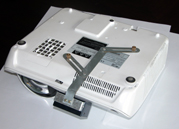 中PAT是適用于各種投影機(jī)與外掛互動(dòng)白板裝置連接的支架,通過此支架可以將互動(dòng)電子白板信號(hào)接收器連接到各種不同的投影機(jī)。PAT支架通過以下技術(shù)方案予以實(shí)現(xiàn):該支架包括一個(gè)主連接桿和一個(gè)以上活動(dòng)連接片,所述的活動(dòng)連接片上有滑動(dòng)槽,每個(gè)所述的活動(dòng)連接片通過一個(gè)鉚釘或一個(gè)螺釘連接到主連接桿且可以轉(zhuǎn)動(dòng)。由于采用了上述結(jié)構(gòu)方案,本實(shí)用新型提供的投影機(jī)外掛互動(dòng)白板裝置支架可以方便地通過螺釘固定到投影機(jī)的底部,然后可將信號(hào)接收器固定在投影機(jī)的前部,使兩者構(gòu)成一體。進(jìn)一步,采用一種后部有螺孔的帶孔螺釘,還可以避免占用吊裝孔而影響吊裝。 |