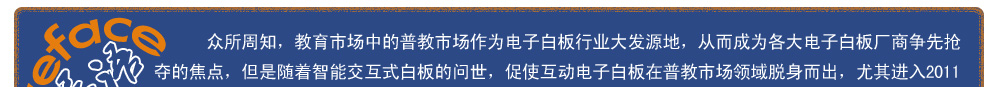 公司依托江蘇徐莊軟件產(chǎn)業(yè)基地,大力發(fā)展具有自主知識(shí)產(chǎn)權(quán)的核心技術(shù),主導(dǎo)產(chǎn)品為交互式電子白板等現(xiàn)代化設(shè)備。公司首創(chuàng)了基于圖像處理的書寫筆跡跟蹤技術(shù),擁有多項(xiàng)國(guó)家發(fā)明和實(shí)用新型專利,在此基礎(chǔ)上實(shí)現(xiàn)的天繪電子白板系統(tǒng)開創(chuàng)了投影機(jī)和大屏幕應(yīng)用的新局面,打破了電子白板技術(shù)和產(chǎn)品一直被國(guó)外公司壟斷的局面,樹立了電子白板發(fā)展的新坐標(biāo),使公司成為目前國(guó)內(nèi)電子白板業(yè)內(nèi)可與國(guó)外企業(yè)并駕的中國(guó)企業(yè)之一。