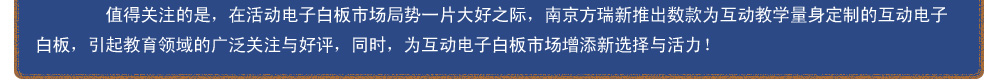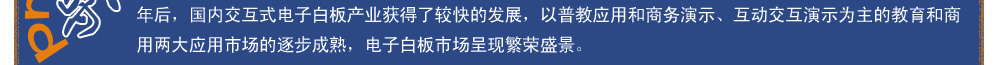 目前,公司的產(chǎn)品已銷往西歐、北美、南非、東南亞等四十多個(gè)國(guó)家和地區(qū),用戶遍及眾多行業(yè)。近幾年銷售額70%以上的速度迅猛增長(zhǎng),提升了國(guó)際競(jìng)爭(zhēng)力,奠定了公司在國(guó)內(nèi)電子白板行業(yè)的領(lǐng)導(dǎo)地位。