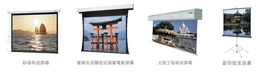 其擁有領(lǐng)選世界的卓越技術(shù),生產(chǎn)的投影屏幕品種齊全(包括:廣角幕、超大幕、圖形幕、黑條紋幕及幕墻),尺寸由40″至200