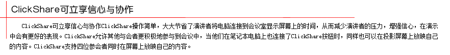 一直以來(lái),解決遇到的應(yīng)用“疼點(diǎn)”成為巴可技術(shù)創(chuàng)新的動(dòng)力。在信息化時(shí)代,溝通和互動(dòng)也越加顯得重要,對(duì)于企業(yè)來(lái)說(shuō),方便溝通、快速溝通已成為亟待解決難點(diǎn)。大家都知道,傳統(tǒng)的會(huì)議,需要專(zhuān)人提前準(zhǔn)備會(huì)議設(shè)備,在花費(fèi)大量時(shí)間同時(shí)各種狀況層出不窮,不僅影響會(huì)議效率,同時(shí)也影響與會(huì)者會(huì)議積極性。隨著巴可企業(yè)級(jí)投影機(jī)及ClickShare可立享的推出,這一現(xiàn)狀將迎刃而解! 值得注意的是,隨著中國(guó)經(jīng)濟(jì)的不斷發(fā)展,現(xiàn)代企業(yè)會(huì)議也隨之而增。當(dāng)然,中國(guó)企業(yè)隨著經(jīng)濟(jì)的不斷增長(zhǎng),企業(yè)自身也獲得高速發(fā)展,因此,中國(guó)企業(yè)現(xiàn)代化建設(shè)也非同一般。正因?yàn)槿绱耍涂赏瞥龅钠髽I(yè)級(jí)投影機(jī)均采用黑白設(shè)計(jì),簡(jiǎn)單大方,貼合現(xiàn)代企業(yè)裝修風(fēng)格,能完美地融于現(xiàn)代企業(yè)會(huì)議室內(nèi)。而ClickShare可立享更是以其簡(jiǎn)易、高效的特點(diǎn),被更大企業(yè)所青睞! |