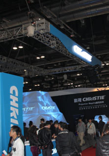 在短焦投影機(jī)產(chǎn)品中,松下推出的產(chǎn)品并沒有太多亮點(diǎn),但在反射式投影機(jī),尤其是應(yīng)用于工程領(lǐng)域的產(chǎn)品,松下算是第一個(gè)品牌。 現(xiàn)場展示的這款型號為PT-FDZ97S的單片DLP產(chǎn)品,具有WUXGA(1920×1200)分辨率,同時(shí)具有8500流明的高亮度,還具備主動(dòng)3D投影功能。從圖中我們可以看到,這款產(chǎn)品配備了一個(gè)反射鏡,推出在機(jī)身的前部。現(xiàn)場介紹,這款產(chǎn)品的投射比為0.38:1,在很短的距離內(nèi)就可以投射出130英寸的超大畫面。