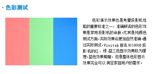 Vivitek麗訊H1180HD不僅繼承前作H1080系列所有優(yōu)點(diǎn),同時(shí)以全新TIDDP平臺(tái)為基礎(chǔ),配備1080pDC3全高清顯示芯片,產(chǎn)品的性能得到實(shí)質(zhì)性提升,H1180HD的色域相比較sRGB標(biāo)準(zhǔn)擁有更豐富的綠色和更深的藍(lán)色表現(xiàn),超越前一代產(chǎn)品,樹(shù)立同級(jí)機(jī)種的新標(biāo)桿! |