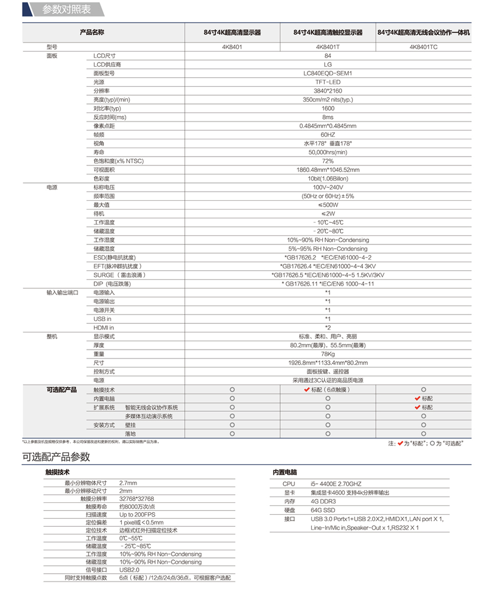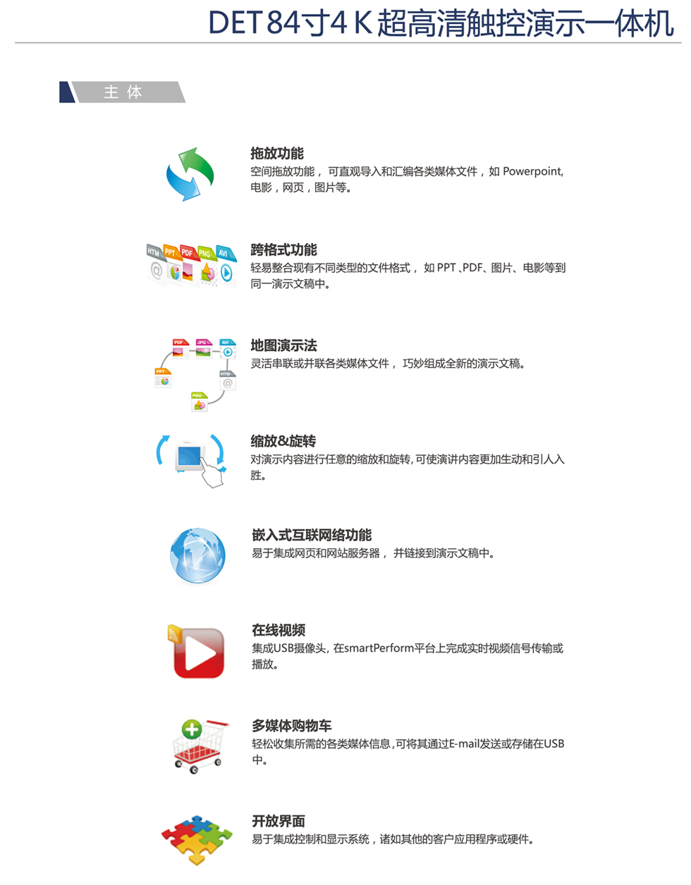 DET德浩84寸4K 超高清觸控演示一體機 |