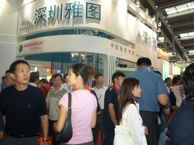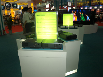 在雅圖公司展區(qū),陣容強大的產(chǎn)品線吸引了前來參觀的觀眾。不同尺寸的AT-65LS9A高清硅晶數(shù)字電視以圓圈的形式擺列,新穎而獨特,正在播放的影片以超大畫面、超高清晰度的畫質(zhì)使觀眾駐足觀賞;而不同型號的投影機產(chǎn)品讓觀眾看花了眼,AT-X8300等產(chǎn)品以智能亮度調(diào)節(jié)、智能梯形校正、斷電保護功能(可根據(jù)客戶的要求配制)以及光防塵設計贏得觀眾的青睞,紛紛、詢問產(chǎn)品相關信息。