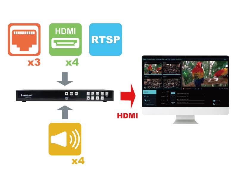 Lumens多媒體網(wǎng)絡(luò)錄播一體機LC200,可實現(xiàn)多信號源錄像存儲、遠程直播等功能。支持4路HDMI、3路IP及4路音 頻輸入,可對輸入影像進行錄像、混合及切換等處理。錄制影像儲存于內(nèi)置硬盤。在無人值守時,可通過預(yù) 先設(shè)定的錄像順序自動啟動錄制及上傳。LC200多媒體網(wǎng)絡(luò)錄播一體機廣泛應(yīng)用于政府部門、企事業(yè)單位、 高校等行業(yè)的會議室、多功能廳等不同應(yīng)用場景。