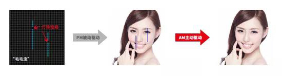 在AM(Active Matrix)主動驅(qū)動方式下,如果有一顆燈珠被擊穿,顯示屏上這個壞點幾乎無法讓人眼察覺,其他燈珠依然能正常顯示,不影響畫面的完整性,從而在根源上徹底解決了傳統(tǒng)小間距LED顯示屏使用一段時間后會出現(xiàn)很多“毛毛蟲”的痛點。