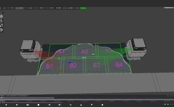 開幕式舞臺長110米、寬40米,被劃分為7個投影區(qū)塊。50臺巴可UDX系列投影機部署在舞臺兩側(cè)的高臺上,通過疊加與拼融技術(shù),將畫面完整、無縫地投射到舞臺地面。由于安裝環(huán)境復雜,投影機采用上下2-3層的堆疊方式。經(jīng)過嚴格測算,本次項目的投射距離長達33至80米,因此投影機配備了投射比1.65:1和4:1兩種規(guī)格的鏡頭。經(jīng)過現(xiàn)場工程師的精密調(diào)校,最終呈現(xiàn)出極其細膩的視覺效果,確保開幕式以最佳狀態(tài)亮相全球觀眾眼前。