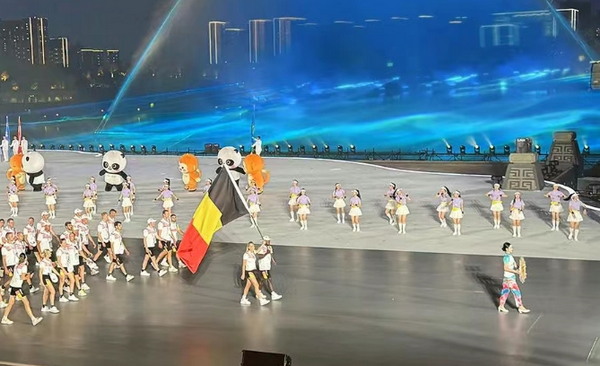 運動員入場儀式開始時,主舞臺后方的湖面上升騰起兩道噴泉,交織成一座高聳的“迎賓拱門”。16臺巴可UDX系列將夢幻的流光溢彩投射到水幕之上,水、光、聲、色在此刻交融,共同勾勒出一幅如夢似幻的畫卷。這既是象征友誼的“歡迎之門”,也是寓意榮耀的“凱旋之門”,為來自116個國家和地區(qū)的運動員獻上來自成都的熱烈歡迎與誠摯祝福。光影躍動間,各國運動員與“蜀寶”、“錦仔”以及數(shù)百位舞者歡笑慶祝,彰顯多元、包容、開放的城市氣質(zhì)。
